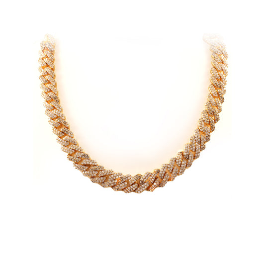 Raised Iced Out Cuban Chain 14mm Gold