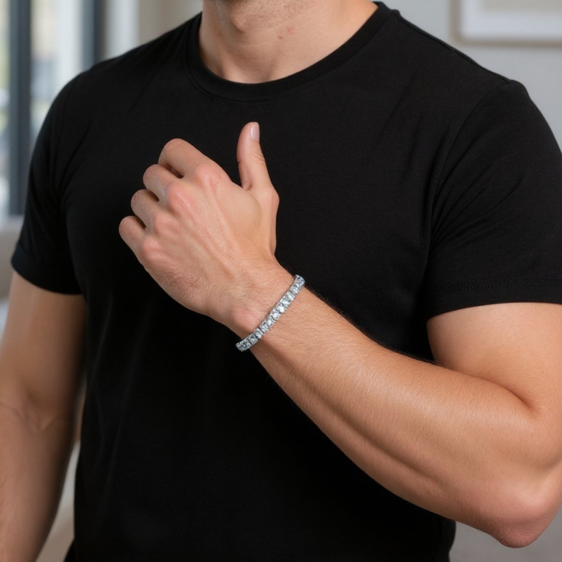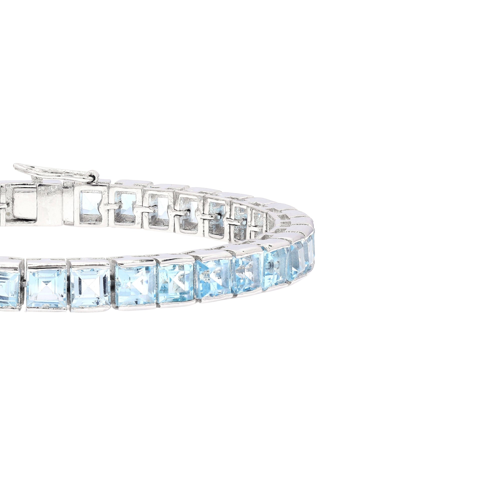 Adorn your wrist with the dazzling beauty of this Blue Topaz tennis bracelet. The brilliant, princess-cut Sky Blue Topaz gems symbolize serenity and creativity, while the stone itself is believed to emit a calming energy that can help reduce stress and anxiety.